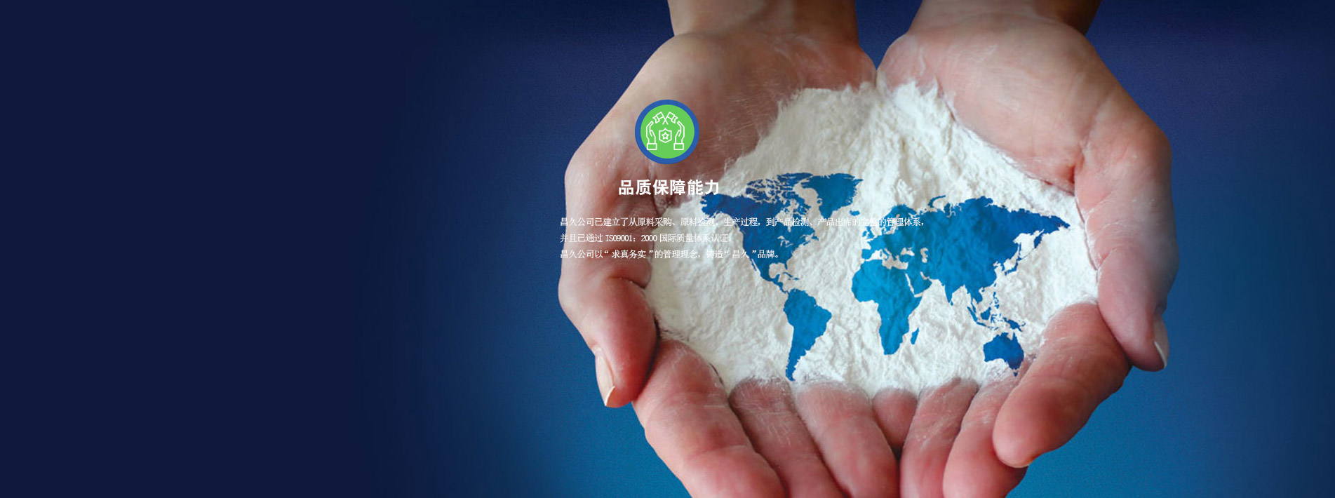 昌久公司已建立了從原料采購、原料檢測、生產(chǎn)過程,到產(chǎn)品檢測、產(chǎn)品出庫的完整的管理體系,并且已通過IS09001:2000國際質(zhì)量體系認(rèn)證。昌久公司以"求真務(wù)實"的管理理念,鑄造"昌久"品牌。